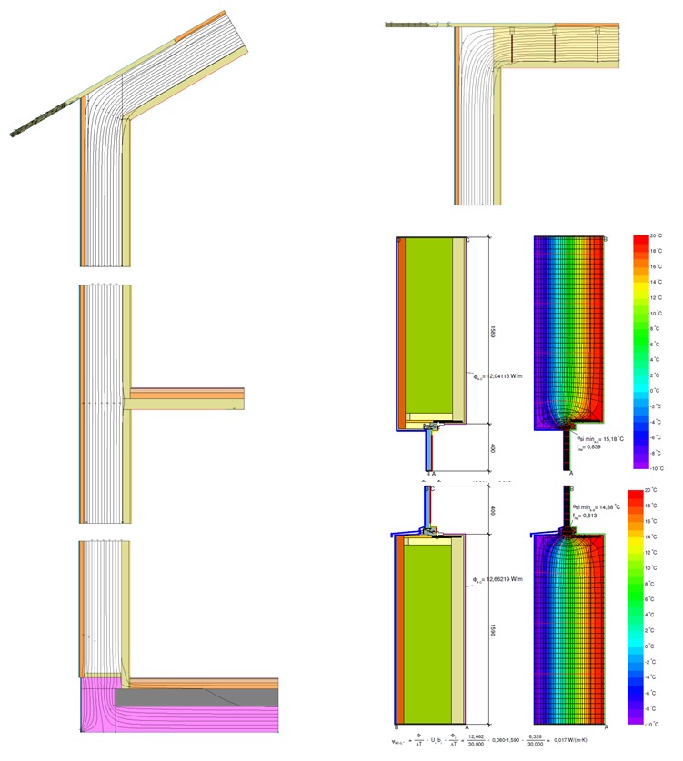 "Based on a space creating and load bearing material for wall, roof and ceiling, that is even airtight, the construction gets very simple and less error-prone. The simple connection of the exterior layer in different thicknesses of insulation opens the way to this thermal bridge free construction. Having very similar details in wall and roof the new system follows an intuitive clear principle. The window frame is at the same time part of the wall, this opens further potential for savings of costs and energy."