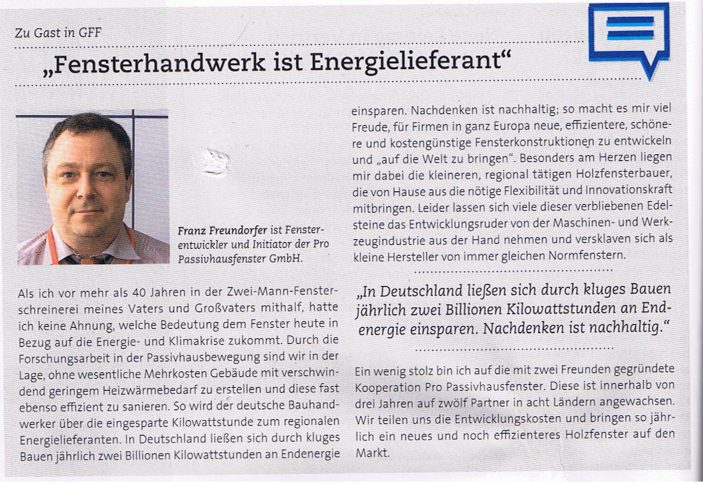 Unser GF Franz Freundorfer zu Gast beim Magazin GFF