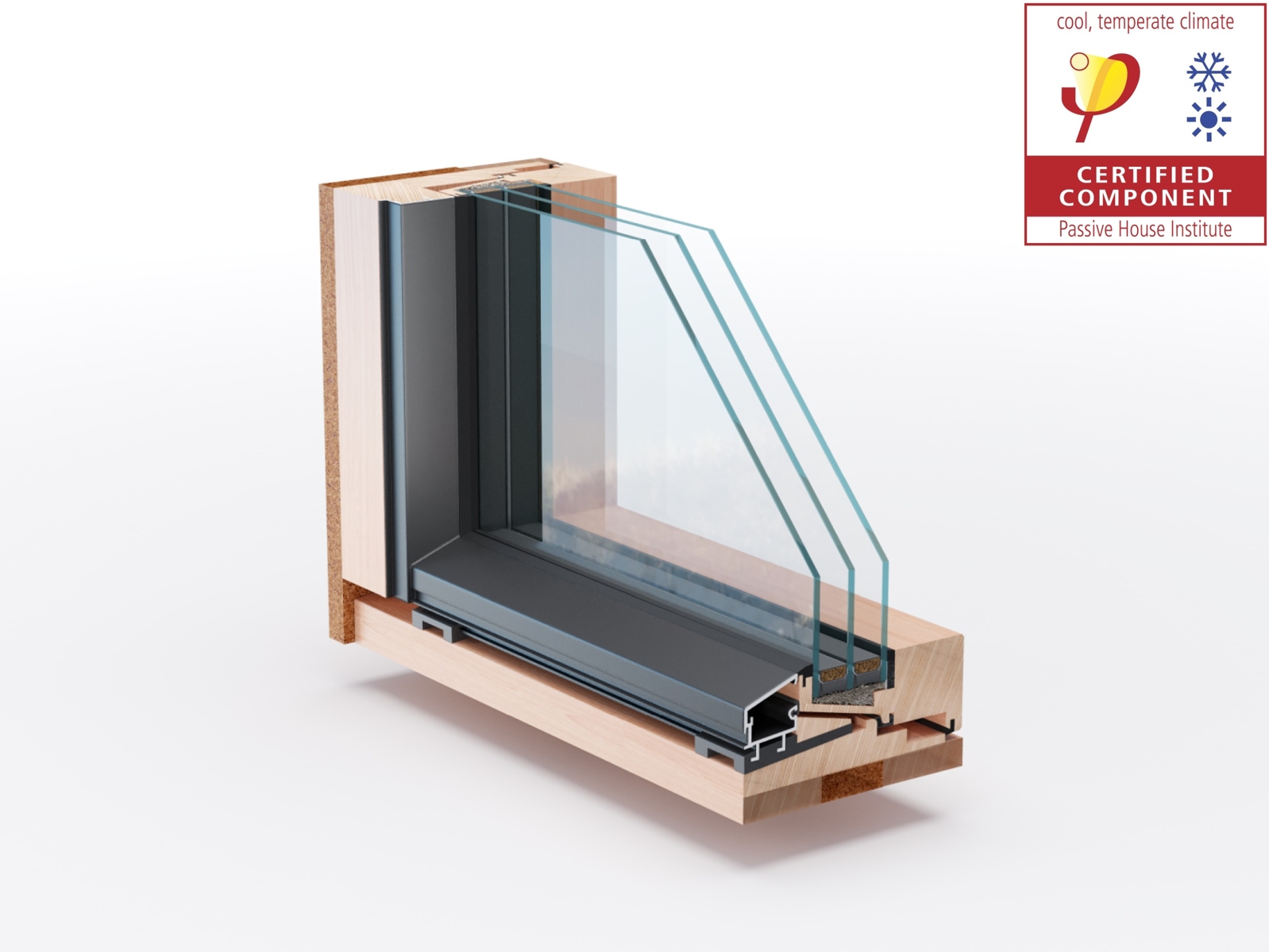 With a complete new approach with regard to the functional levels of the window, the two window innovators Franz Freundorfer and Sepp Lorber have succeeded in providing for the first time a window which no longer needs a structural-bearing layer in the glass plane. This is achieved by transferring the load through fiber-reinforced corner pieces, which at the same time connect the individual wood parts of the window sash into a fixed unit. This innovation is well known from smartwin arctic and also in use for smartwin solar.